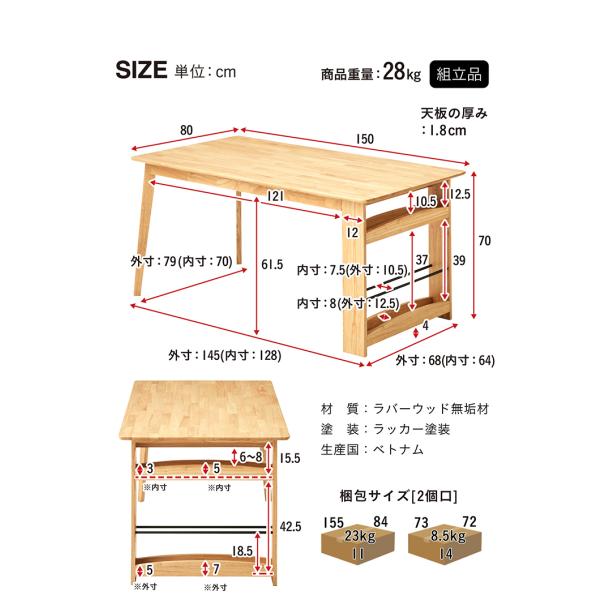 ダイニングテーブル 単品 幅150cm 収納付き リビング ダイニング テーブル リビングテーブル 4人掛け 食卓テーブル 作業台 ナチュラル 木製 おしゃれ Cena(セナ)