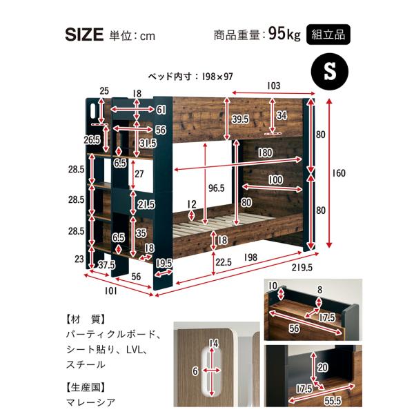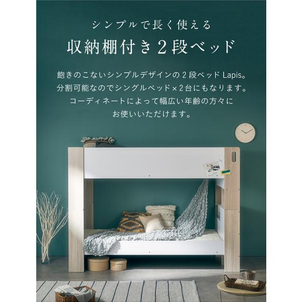 二段ベッド 大人用 子供 Sサイズ 宮棚 収納棚 分割 分離 子供用ベッド シングルベッド おしゃれ 宮付き 2段ベッド Lapis(ラピス) 2色対応