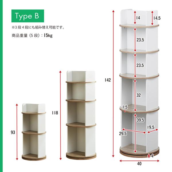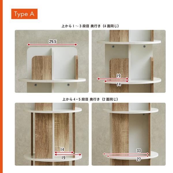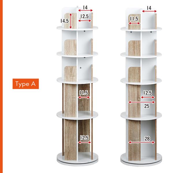 【図鑑対応】絵本棚 絵本ラック 回転 スリム 大容量 5段 Whoopi(ウーピー) 2Type 3色対応 おしゃれ 木製 本棚 収納棚 収納ラック 回転式 シンプル コンパクト 本