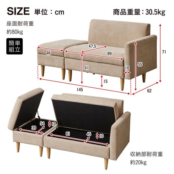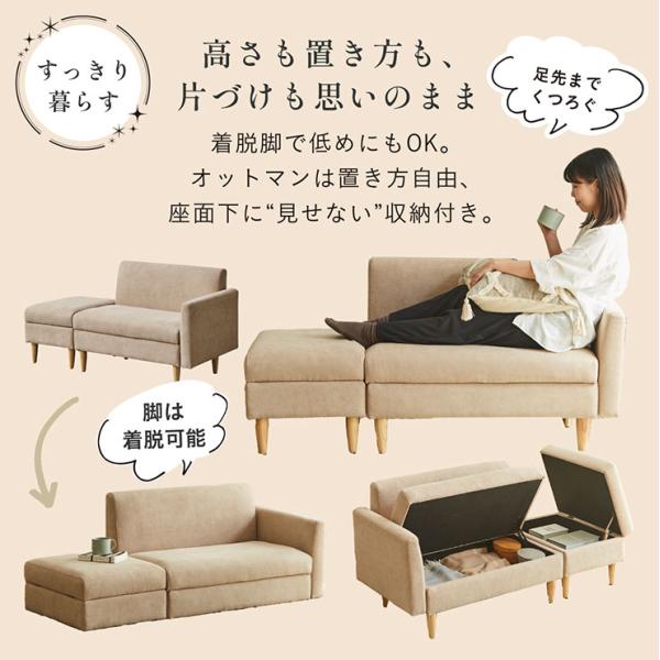 収納付きソファ 2Pソファ ロースタイル オットマン 脚取り外し可