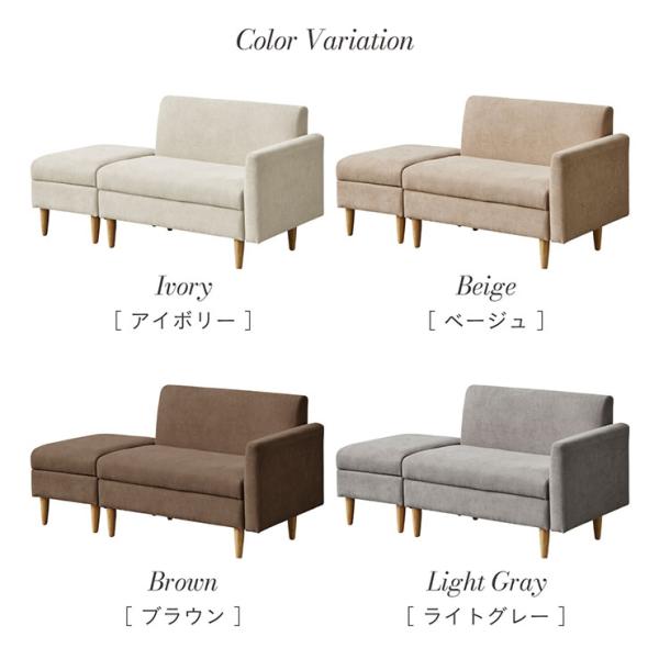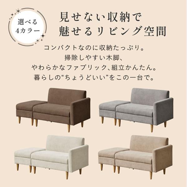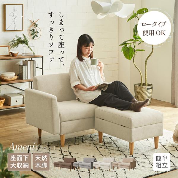 収納付き ソファ 2人掛け コンパクト ローソファ Ameni(アメニ) 4色対応 おしゃれ オットマン付 省スペース 分割可能 シンプル ファブリック 天然木脚 肘置き付