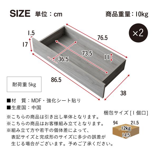 ベッド下収納 収納ボックス 収納ケース キャスター付き おしゃれ 幅86.5cm 大容量 83L ステージベッド専用 引き出し 2杯 Soares(ソアレ) 4色対応