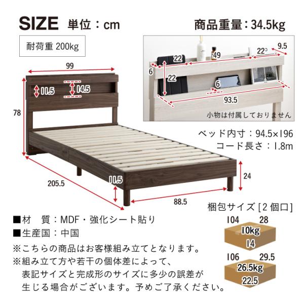 宮付きベッド シングル ベッドフレーム コンセント Cline(クライン) 4色対応 コンセント付き 照明付き ヘッドボード すのこ 木製 おしゃれ 北欧風 モダン 寝室