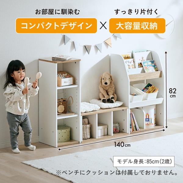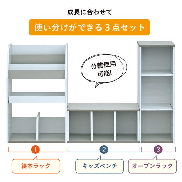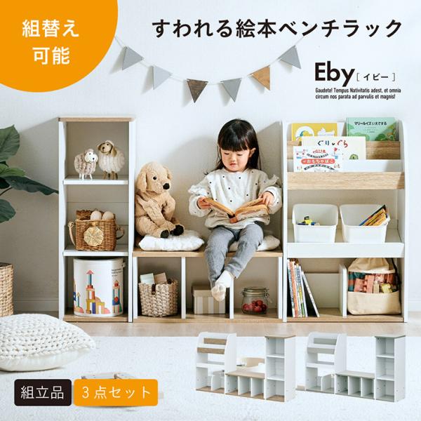 絵本棚 絵本ラック ベンチ 本棚 おもちゃ収納 キッズ収納 表紙が見える キッズベンチ ブックシェルフ リビング収納 おしゃれ 収納3点セット Eby イビー 2色対応