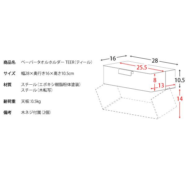 ペーパータオルケース ディスペンサー 壁掛け 小物置き コンパクト 省スペース オシャレ おしゃれ ペーパータオルホルダー TEER(ティール) TH-1600M 3色対応