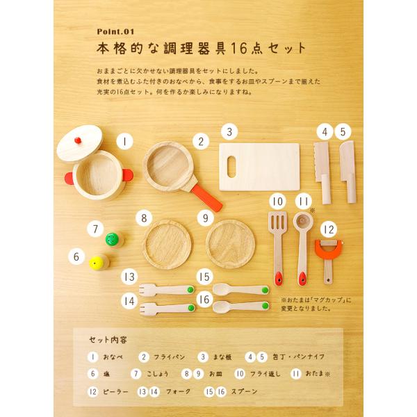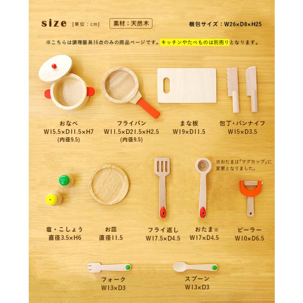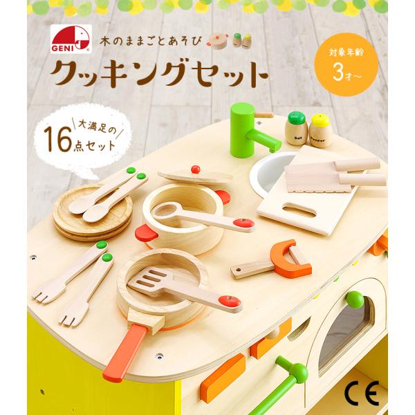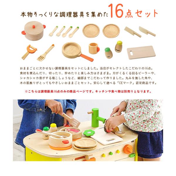 充実の16点セット CEマーク付 ままごとセット 木のおもちゃ おままごとキッチンと一緒に遊べる 木のままごとあそび クッキング16点セット(※キッチンは別売)