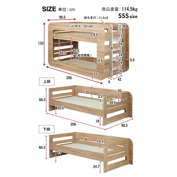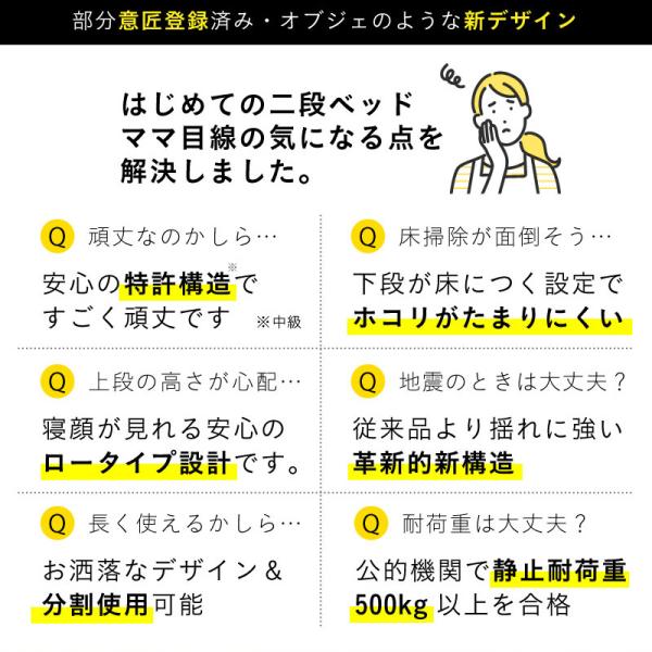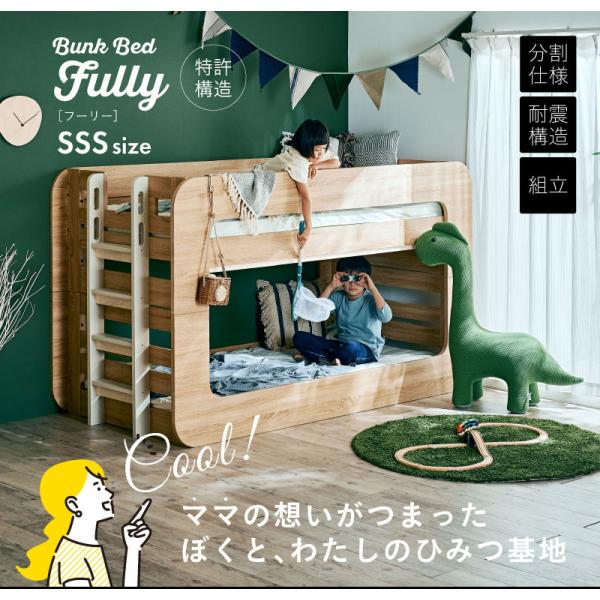 特許 超耐震構造 二段ベッド 2段ベッド SSSサイズ 二段ベット おしゃれ ロータイプ 分割 子供 大人 シングルベッド Fully(フーリー) 4色対応
