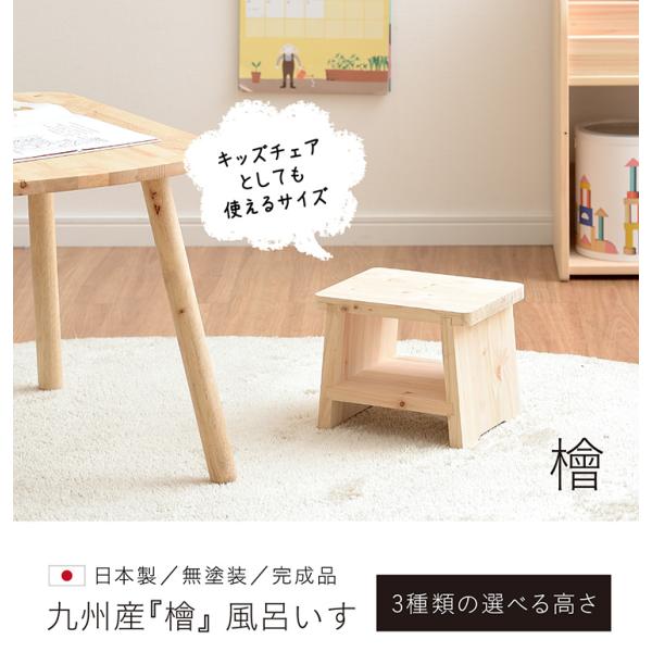 3年保証 国産 完成品 無塗装 ひのき 椅子 チェア チェアー イス いす 木製 踏み台 スツール オットマン 玄関 風呂いす 風呂椅子 バスチェア 檜椅子 3サイズ対応
