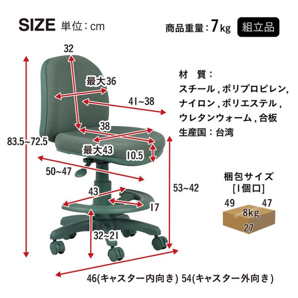 勉強椅子 子供椅子 高さ調節 足置き ワンカラー 子供用 シンプル
