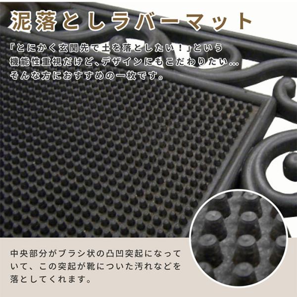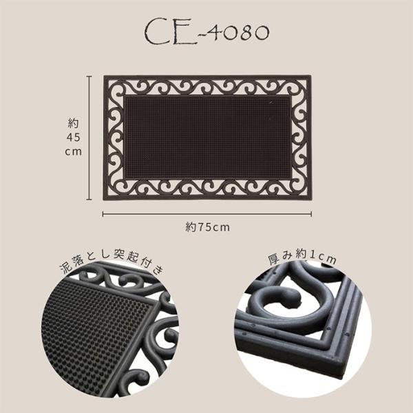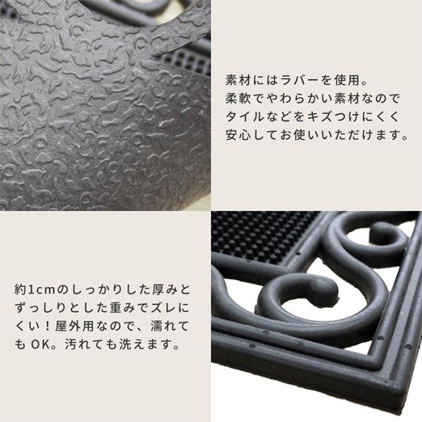 マット ラバーマット CE-4080 おしゃれ 約45x75cmx厚さ1cm ゴム 屋外用玄関マット エントランスマット 水洗い可能 泥落とし アジアン風 インド製