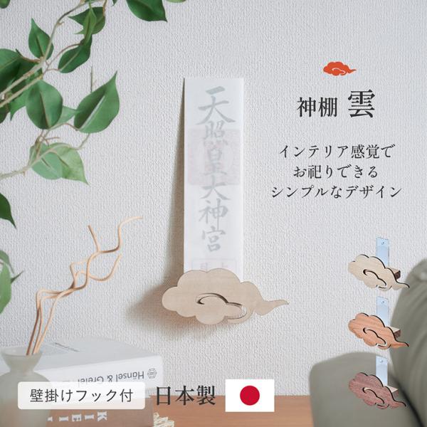 神札スタンド 神棚 日本製 壁掛け 神札立て 御札受け 神札ホルダー お守り 祈祷札 石膏ボード フック おしゃれ<神棚 雲> 3色対応