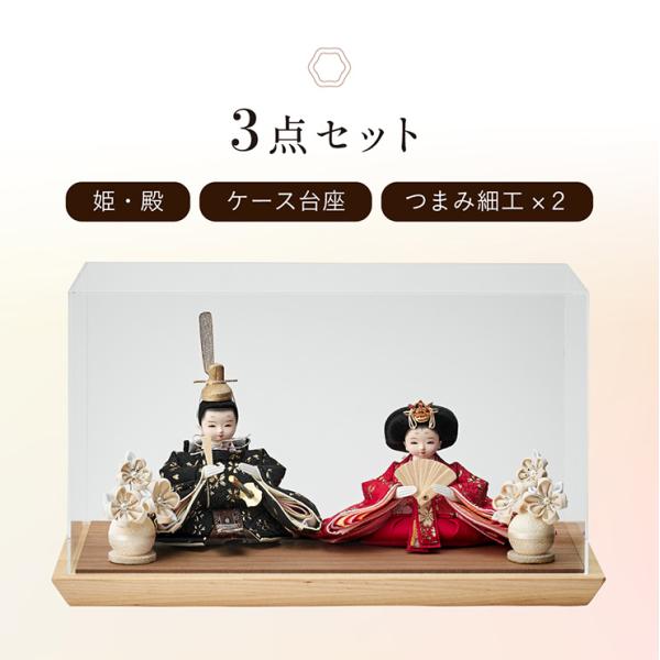 雛人形 コンパクト ケース飾り おしゃれ ひな人形 おひなさま かわいい インテリア 日本製 2way 3点セット 親王飾り お雛様 おぼこ顔タイプ 4色対応