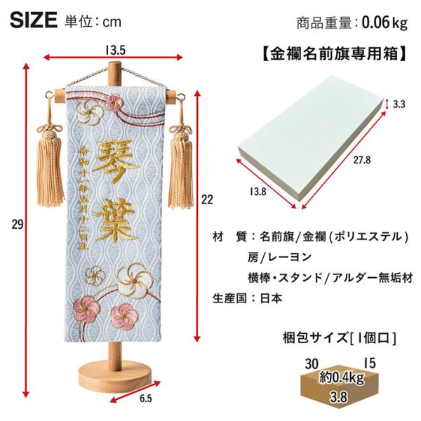 名前旗 女の子 スタンド 刺繍 節句 命名書 おしゃれ 名入れ旗 生年月日入【名入れ無料】金襴名前旗 房あり スタンド3点セット 4色/3タイプ対応
