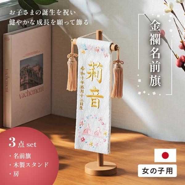 名前旗 女の子 スタンド 刺繍 節句 命名書 出産祝い 誕生日 木製