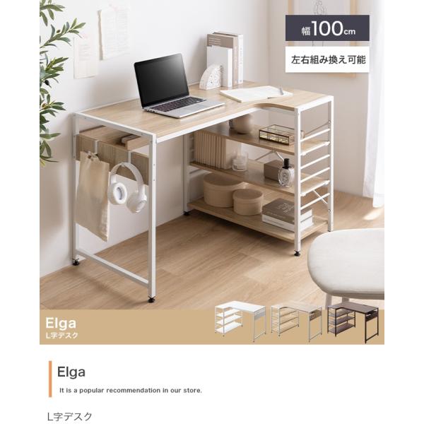 パソコンデスク デスク 幅100cm 左右組み替え可能 L字デスク PCデスク おしゃれ ワークデスク 学習机 勉強机 Elga(エルガ) 3色対応