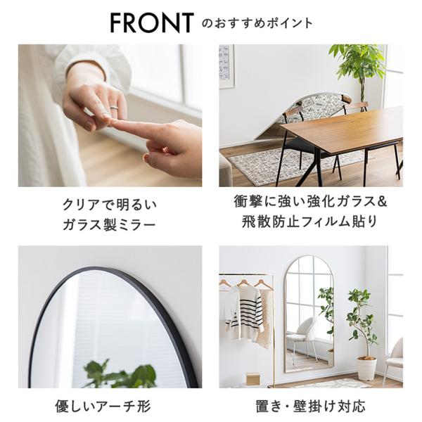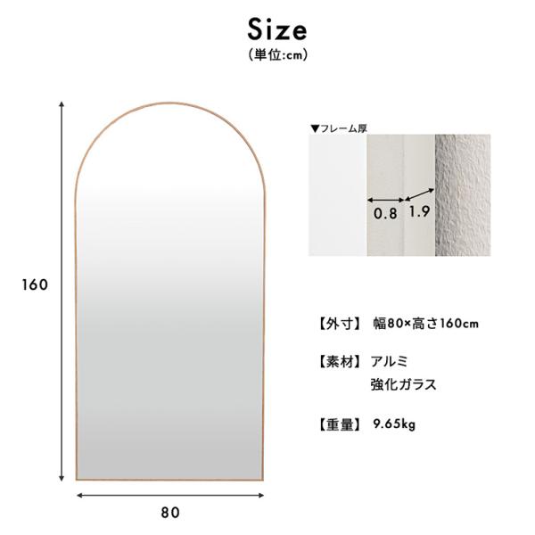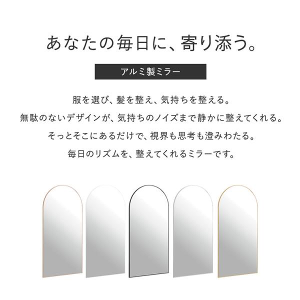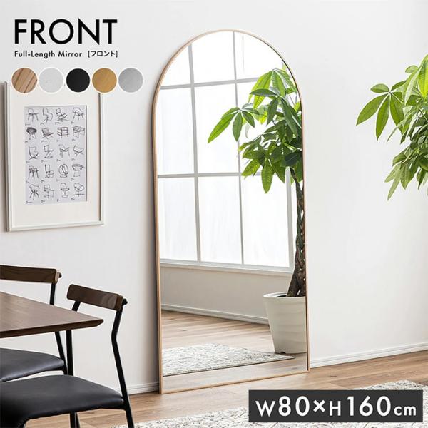 鏡 スタンドミラー 姿見 全身鏡 おしゃれ アーチ型 80x160cm ミラー 全身ミラー かがみ 壁掛け アルミ製 ガラス Front(フロント) 5色対応