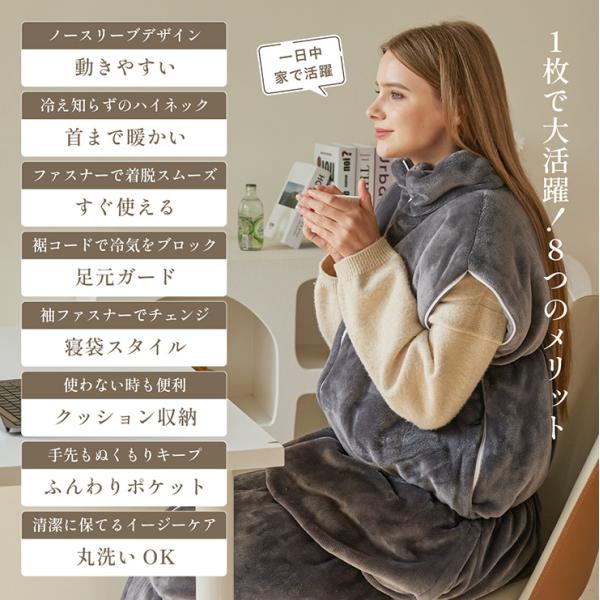 ルームウェア 防寒 部屋着 洗濯可 ファスナー式 クッション兼用