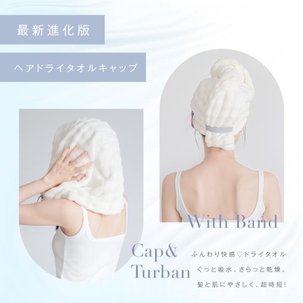 【キャップ型】通常のタオルを髪に巻くのは手間ですが、被るだけのキャップは簡単に髪を包み込めます。ターバンスタイルでロングヘアにも◎