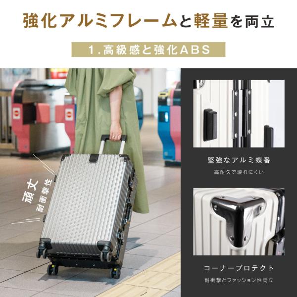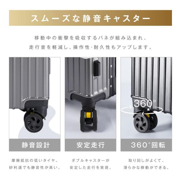 スーツケース キャリーケース 機内持ち込み アルミフレーム S/M カップホルダー スマホスタンド フック付き 収納ポケット 静音 ダブルキャスター 旅行 出張