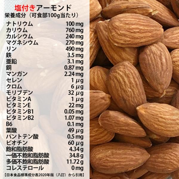 [原材料名(塩味)]アーモンド(アメリカ産)、植物油、食塩/調味料(アミノ酸等)