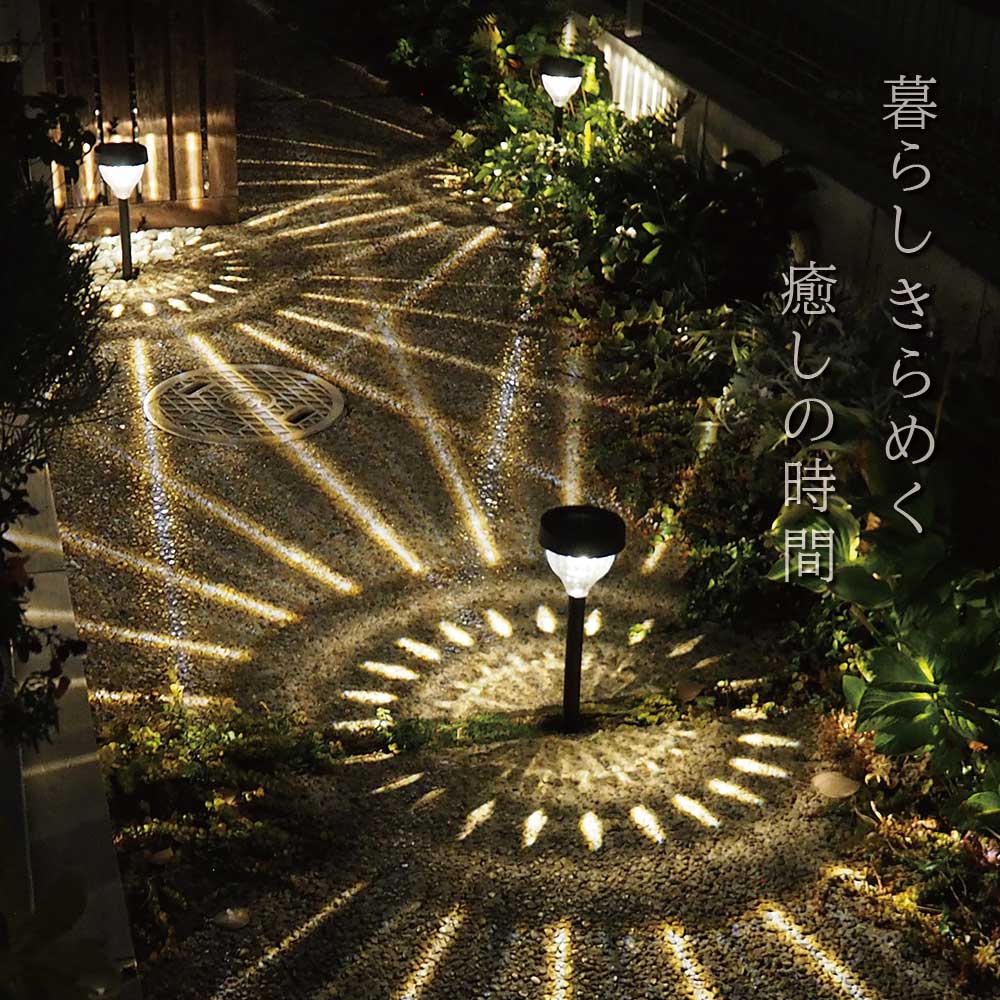 美しい光の模様を地面に投影するガーデンライト