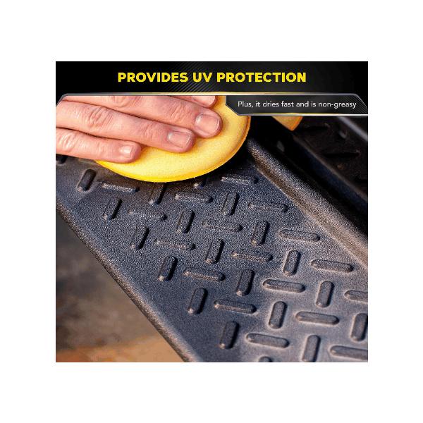 Meguiars Ultimate Black Plastic Restorer は、ゴム、プラスチック、ビニールの内側と外側を長持ちさせる究極の UV 保護と光沢です。 色と輝きをリフレッシュし、日光、洗車、雨に耐えます。