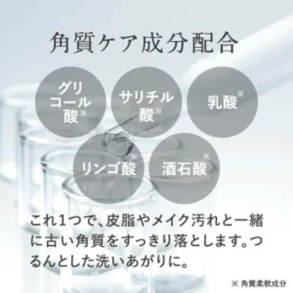 グリコール酸・乳酸・サリチル酸など5種の角質ケア成分を配合し、皮脂やメイク汚れとともにくすみの原因となる古い角質をスッキリ除去します。