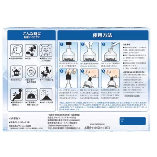 お得な洗浄ボトル付きセット 当日エコ発送品 サイナスリンスキット ニールメッド 鼻うがい 鼻洗浄キット ボトル3個 250包
