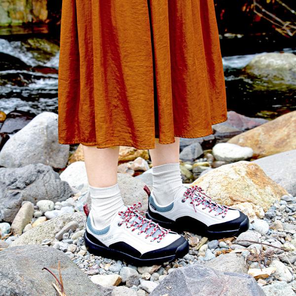 キャンプにも。日常使いにも。ちょうどいいアウトドアスニーカー。ソールユニットを一新し、ブランドのアイコンモデル「アオラギ」をアップデート。透湿防水メンブレン「ドライハイ ライト」を備えた充実の機能性で、オールラウンドに活躍します。付け替え可能なスペアシューレースが付属しています。