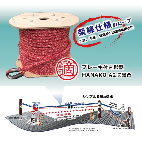 型崩れしにくいため、架線作業における固定索(主索、親綱、本線とも)としての用途に適しています。