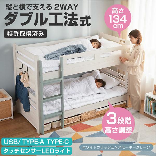 レビュー特典有り 二段ベッド 2段ベッド 大人用 子供 分離 分割 シングル ロータイプ USB付 タッチセンサーライト 開閉フック付 ベイス フレームのみ
