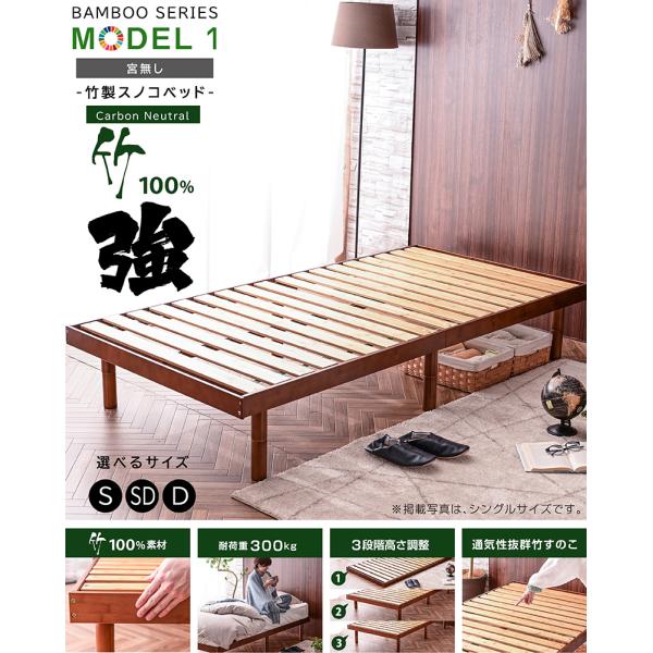 天然木竹 本体フレームのみ ベッド ベッドフレーム 最安値挑戦 ダブルベッド すのこベッド ローベッド ベッド 3段階高さ調節 モデル1-ART
