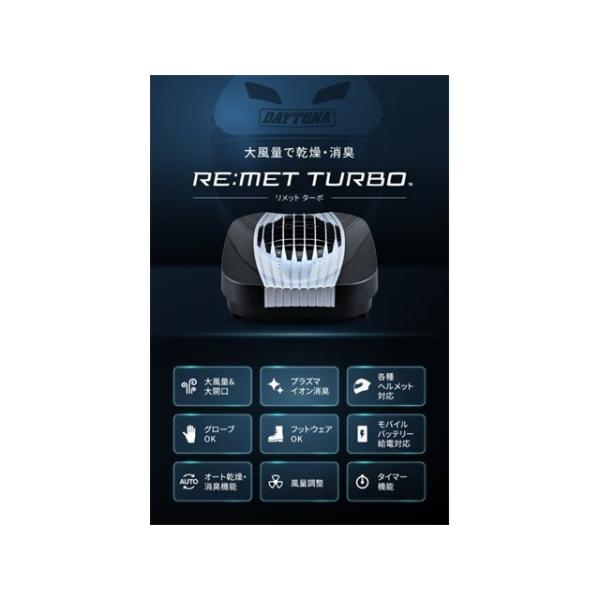 DAYTONA デイトナ バイク ヘルメット 消臭 乾燥機 スタンド プラズマイオン 3段階風量 タイマー付き グローブ/ブーツ対応 RE:MET TURBO(リメット ターボ) ブラック 63636