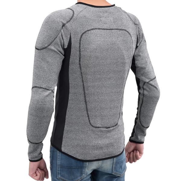 衝撃時に瞬間硬化するSAS-TEC製プロテクターを胸部・ひじ・肩・背中に装備。