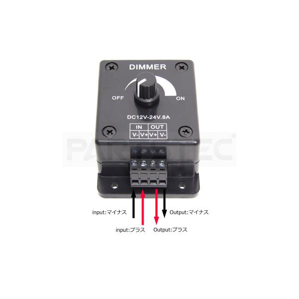 12V/24Vに対応し、ダイヤル操作でLEDの明るさを調整できます。