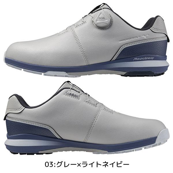 ミズノ ゴルフシューズ ネクスライト エナジー ボア MIZUNO NEXLITE ENERZY BOA 幅広4E 防水 軽量 スパイクレス 03:グレー×ライトネイビー