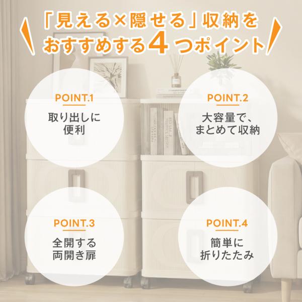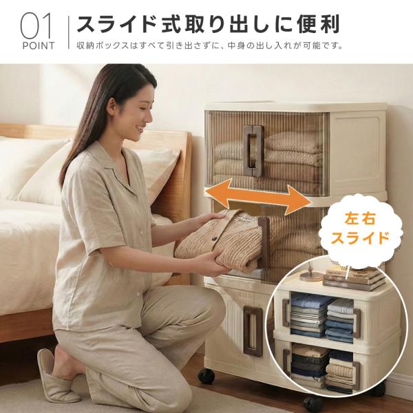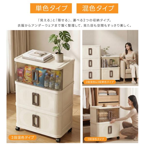 収納ボックス 折りたたみ 前開き ふた付き 半透明&アイボリー 収納ケース 3/4段 キャスター付 おしゃれ 衣類/布団収納 大容量 小物収納 プラスチックコンテナ