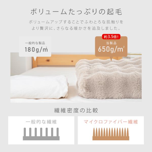 一般的な製品の約3.5倍、650g/m2の超極細マイクロファイバーでしっかり保温。