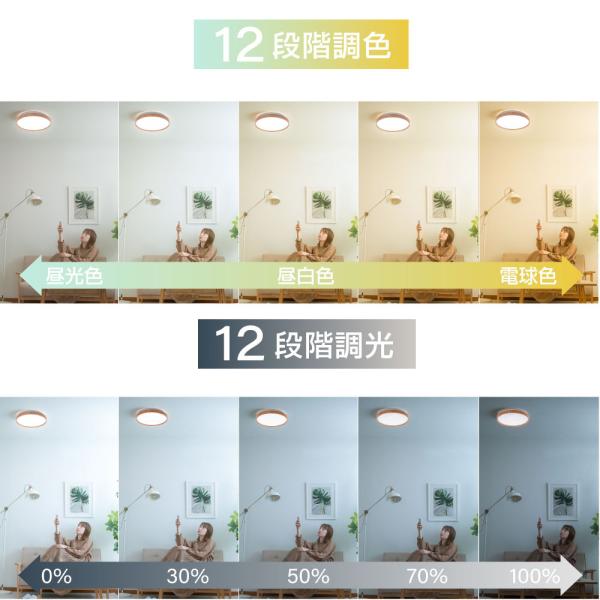 【12段階調色 6段階調光】光の色と明るさが調節できる リモコンで光の色と明るさを変えられるから、暮らしのシーンやお部屋に合わせて手軽にあかりの切り替えが出来ます。