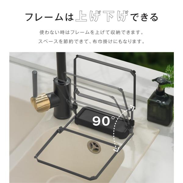 【ぴったりサイズのフレーム】フレームは広すぎないゴミネットに適切なサイズ。水切り中は洗いものの邪魔にならなくて快適です。