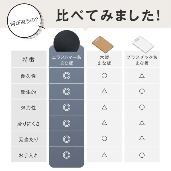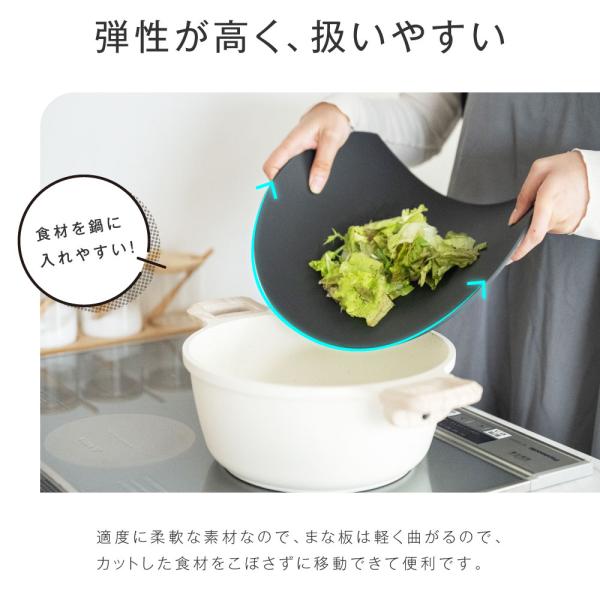 【弾性が高く】適度に柔軟な素材なので、まな板は軽く曲がるので、カットした食材をこぼさずに移動できて便利です。刃の衝撃を吸収するクッション性は、食材をサクサクと快適な切れ心地。手に負担がかからず疲れにくいです。