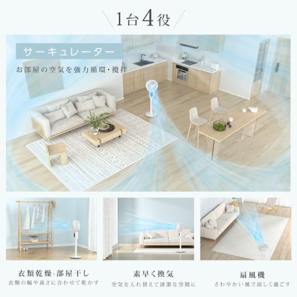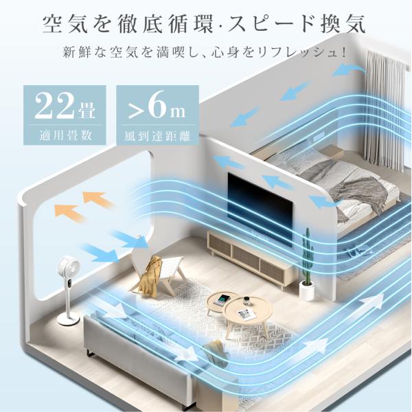 【パワフル送風&ジェット気流効果】渦巻き状の風が中心に集まり、直進的に遠くまで届ける。 スパイラル気流で遠くまで届くパワフルな風から、長時間に当たってもだるさがない、優しい微風まで自由自在。サーキュレーターとして冷暖房の効率UPや衣類乾燥に大活躍!一年中、快適に使えてとても便利です。