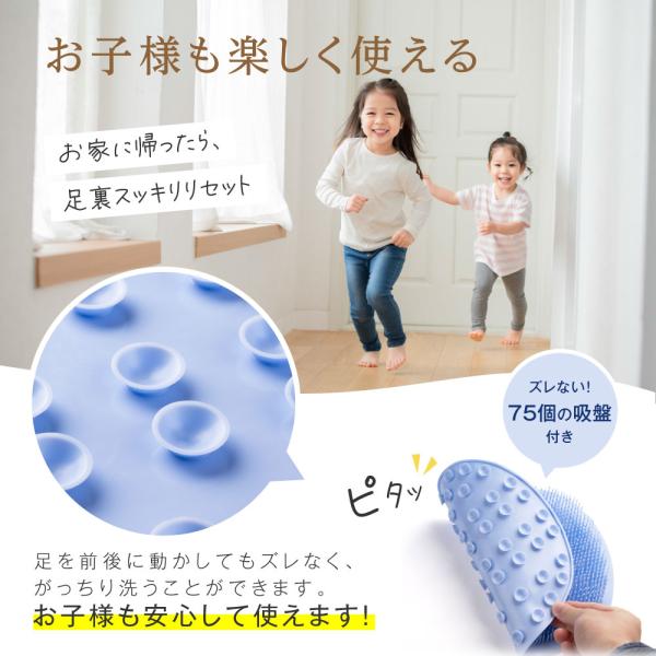 【お子様も楽しく使える】75個の吸盤付きます。足を前後に動かしてもズレなく、がっちり洗うことができます。お子様も安心して使えます!