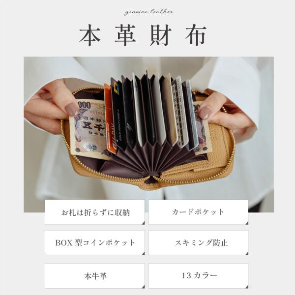 【収納力アップ】ミニマルでも収納力に優れて、コンパクトに持ち歩くことができます。ジャバラ式にガバッと広がるカードポケット。一目で見渡せて取り出しやすい。小銭入れ部分はボックス型を採用。小銭がたくさん入り、中身が一目でわかる。仕切りが高くて小銭がこぼれない。レジでの会計もスマート!