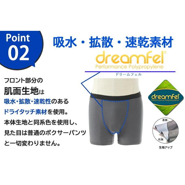 ・パッド部分は、「吸水・速乾素材」を使用しているため、尿や汗をすばやく吸水・さらっと快適な着心地をキープ