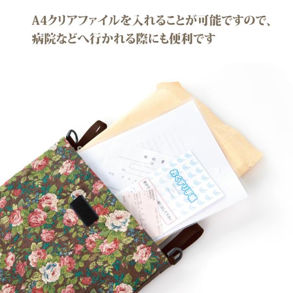 ・A4サイズの書類を入れることが可能ですので、病院などへお出掛けする際に便利です