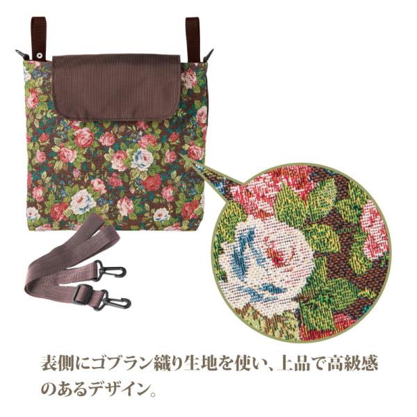 バッグ シルバーカー用 ゴブラン織り サブバッグ 車いす 介護ベッド用 薔薇 おしゃれ かわいい 入院 A4 敬老の日 ギフト プレゼント