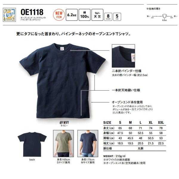 CROSS&STITCH / クロス&ステッチ (クロスステッチ) OE1118 6.2oz オープンエンド マックスウェイト バインダーネックTシャツ