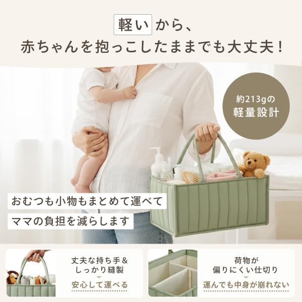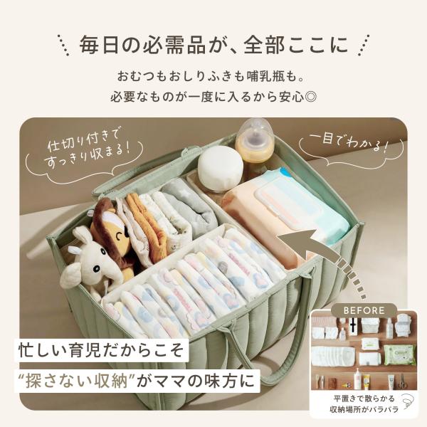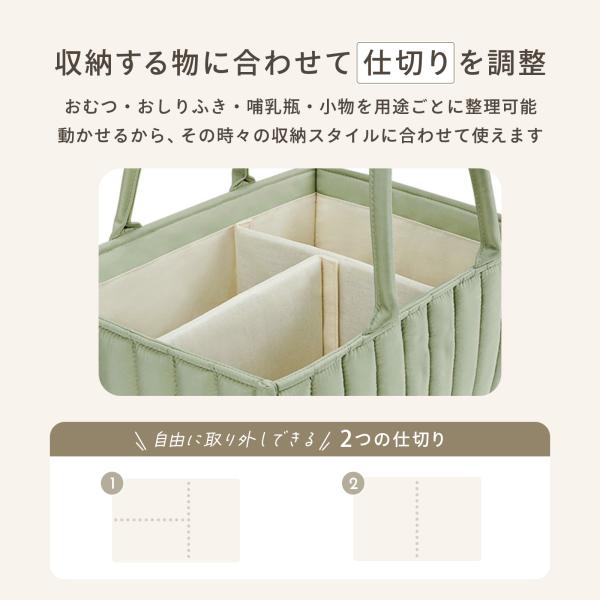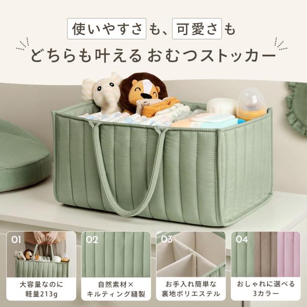 おむつストッカー 大容量 仕切り付き 軽量 コットン キルティング ベビーグッズ収納 持ち運び便利 おしゃれ 北欧風 収納ボックス おむつ収納 おしりふき