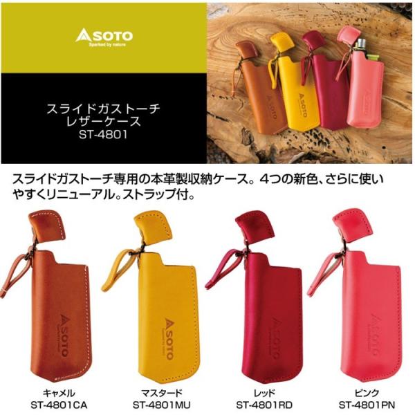 2020 NEW レザーケース SOTO ソト スライドガストーチ レザーケース ST-4801 キャメル マスタード レッド ピンク ネイビー ブラウン グリーン 爆買